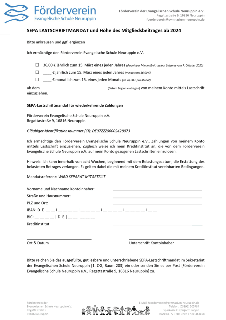 Als Mitglied im Förderverein können Sie unsere gemeinnützige Arbeit nachhaltig unterstützen. Die Höhe des Mitgliedsbeitrages können Sie selbst festlegen. Die Hauptversammlung hat einen Mindestbeitrag von 36 € im Jahr beschlossen.